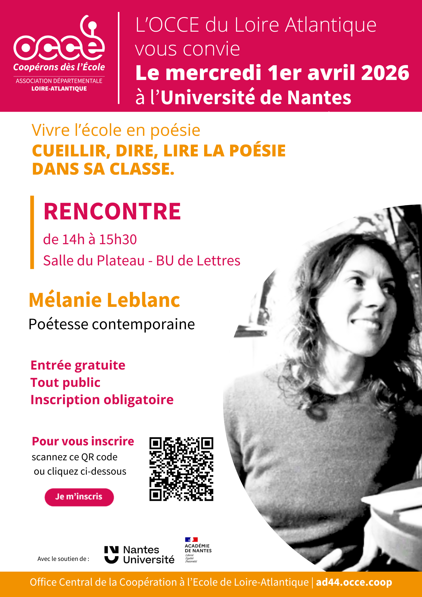 L'OCCE44 accueille la poétesse contemporaine Mélanie Leblanc