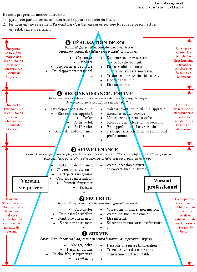 La Pyramide de Maslow et quelques autres classifications des besoins humains