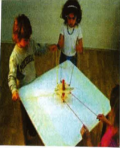 Les enfants tirent les ficelles pour diriger un crayon et laissent libre cours à leur imagination collective.